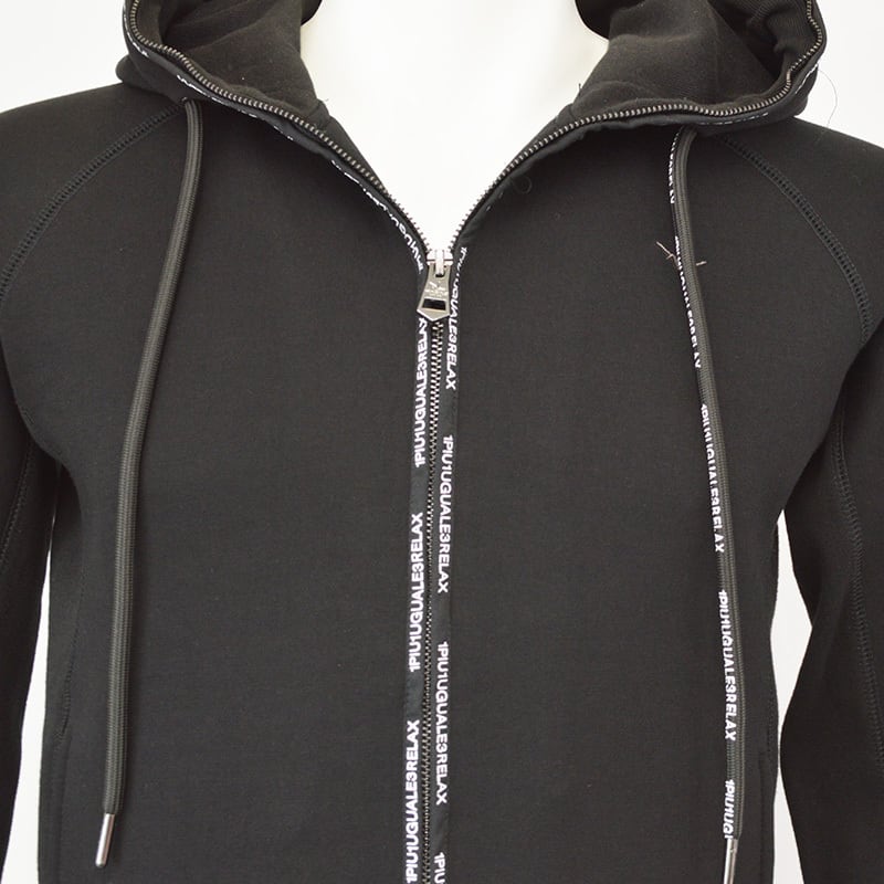 1PIU1UGUALE3 RELAX|ウノピゥウノウグァーレトレ リラックス|サークルロゴパイピングパーカー|メンズ|ブラック