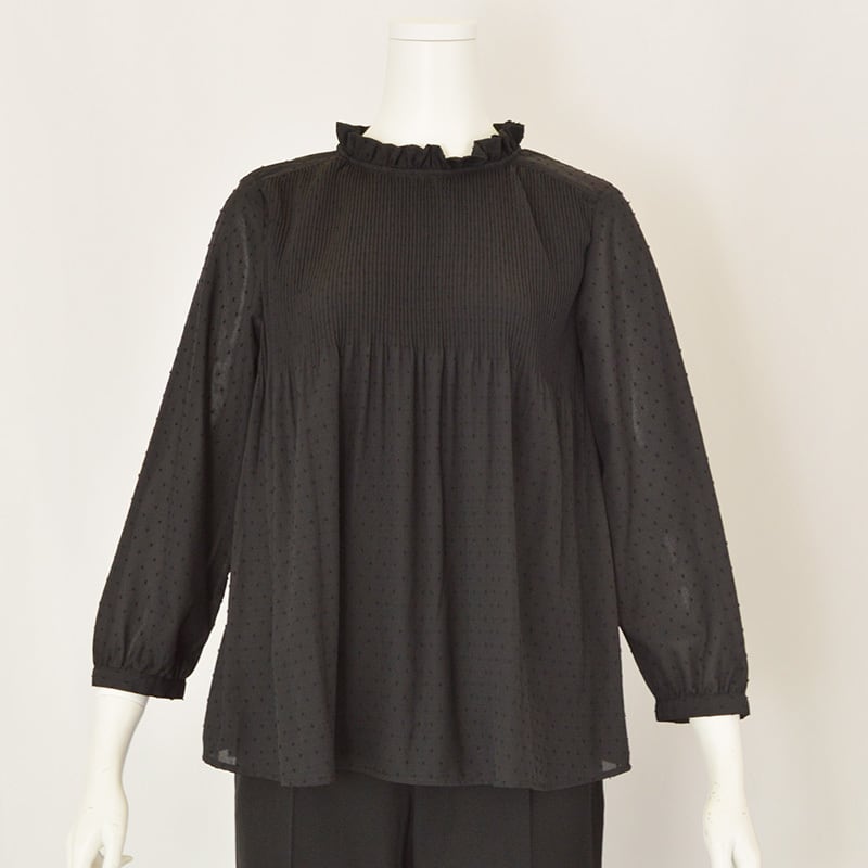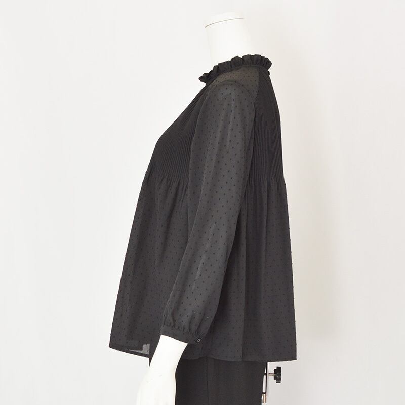 シアードット切替フリルネックブラウス|レディース|ブラック