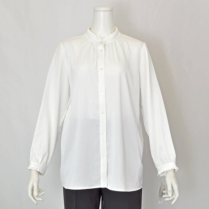 スタンドフリルネック ボタンブラウス|レディース|オフホワイト