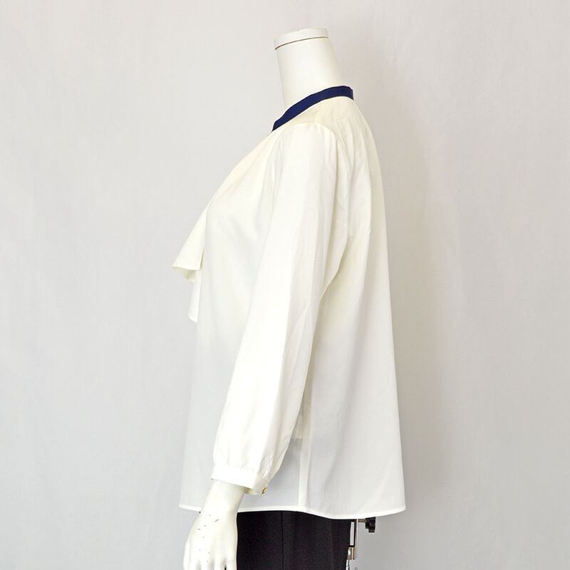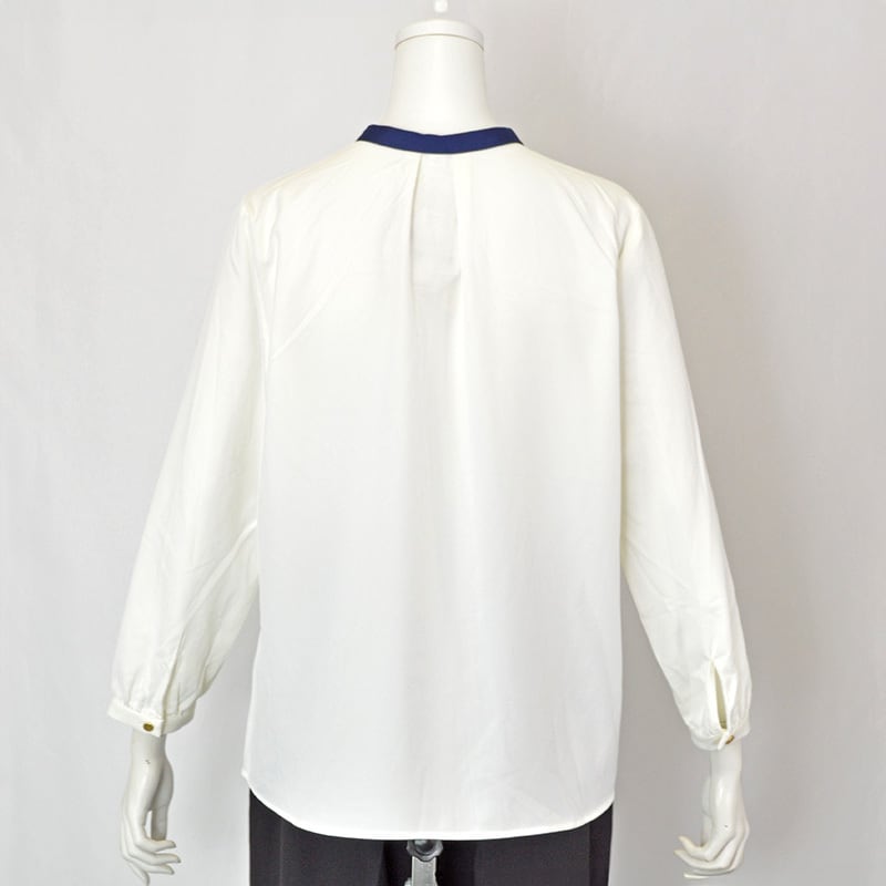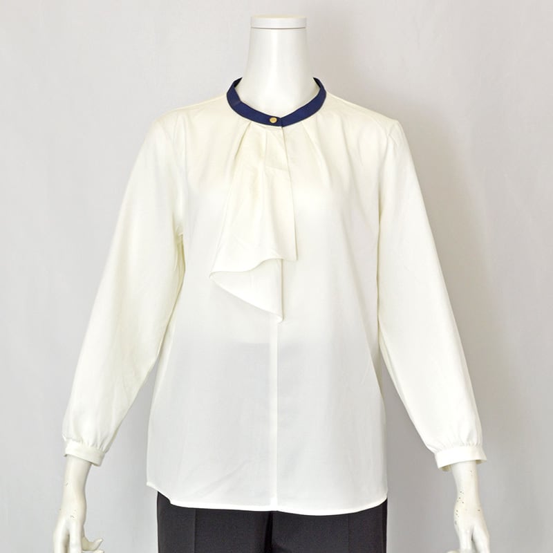 配色ネック ラッフルデザインブラウス|レディース|オフホワイト