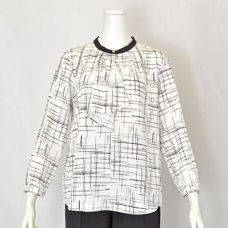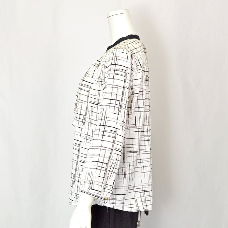 配色ネック ラッフルデザインブラウス|レディース|シロクロ
