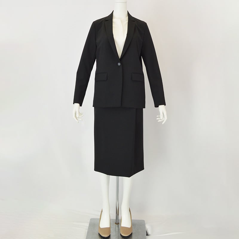 ラップ風デザインがエレガントな装いを演出し、すとんと落ちるラインでスマートに決まります。