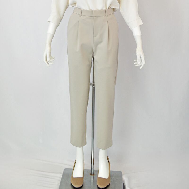 腰まわりに立体感を与えるワンタック仕様のテーパードパンツ。