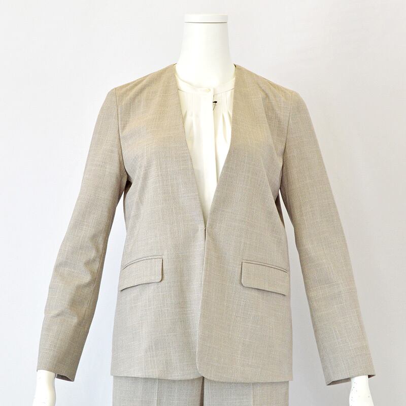 奥行きのあるツイード素材で仕上げた、気負わず羽織れるノーカラージャケット。
