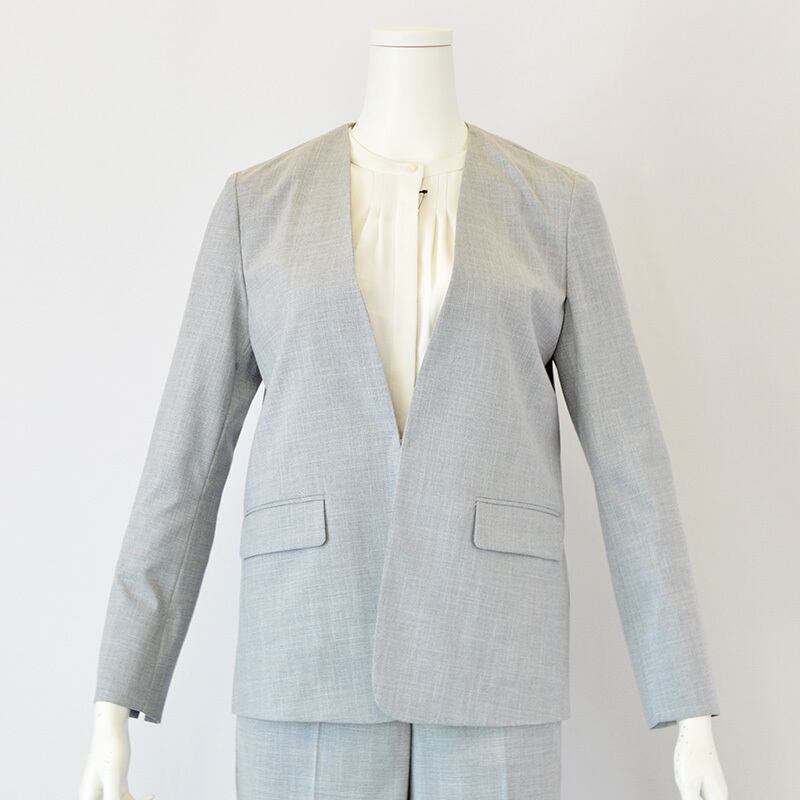 奥行きのあるツイード素材で仕上げた、気負わず羽織れるノーカラージャケット。