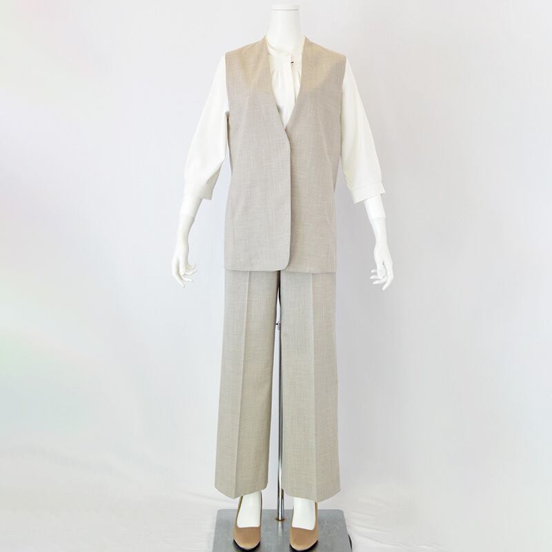 INDIVI|インディヴィ|キャリーマンツイーディーノーカラージレ ベスト|レディース|ベージュ