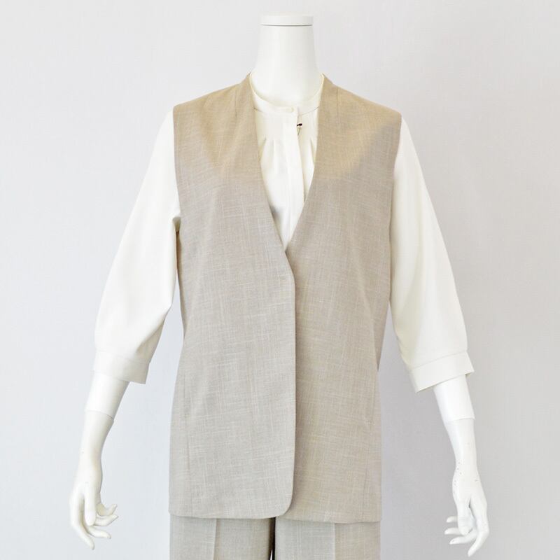トレンドのレイヤードスタイルが叶うミドル丈のノーカラージレ。