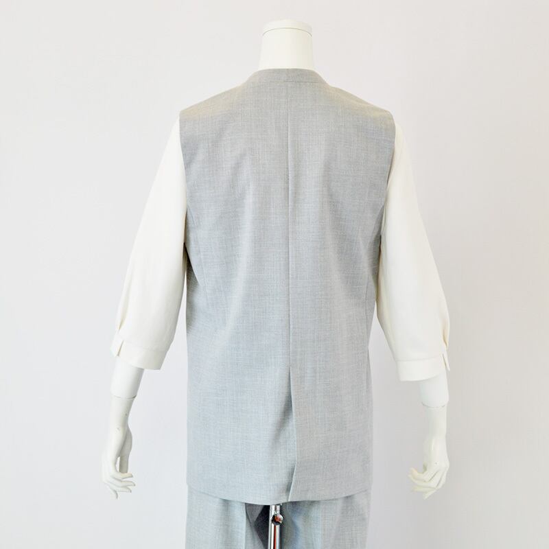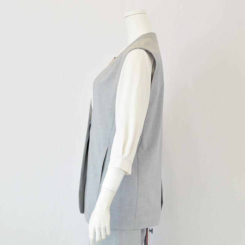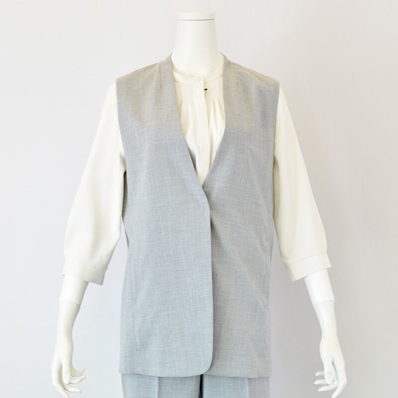 トレンドのレイヤードスタイルが叶うミドル丈のノーカラージレ。