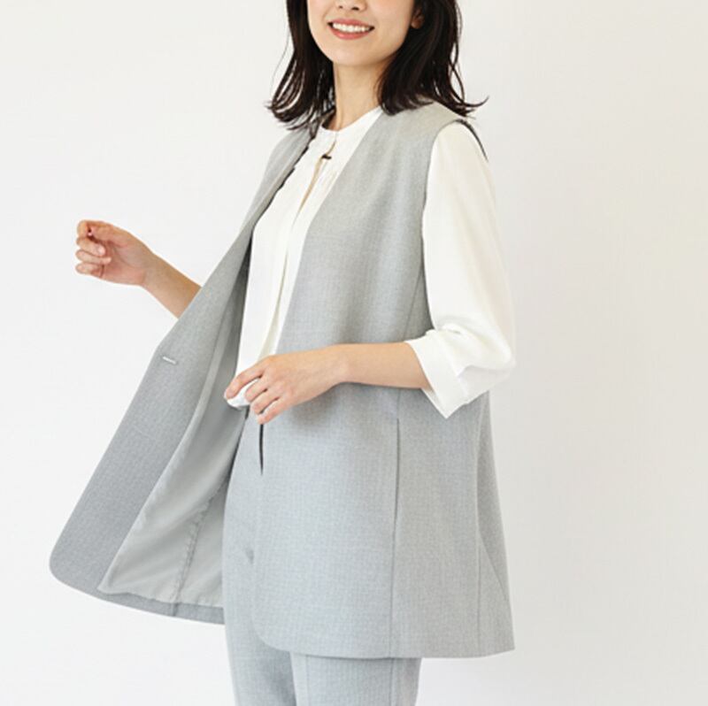 INDIVI インディヴィ|レイヤードスタイルジレベスト|通勤通学 セレモニー キャリーマンツイーディーノーカラージレ ベスト レディース L.グレー n65-24000