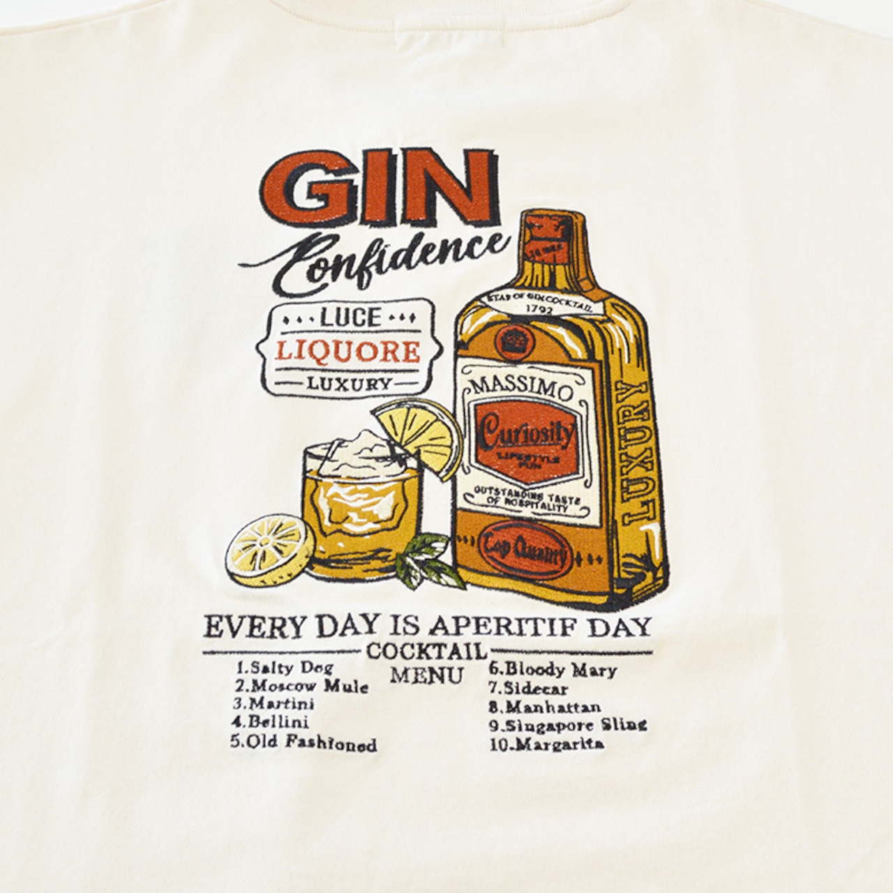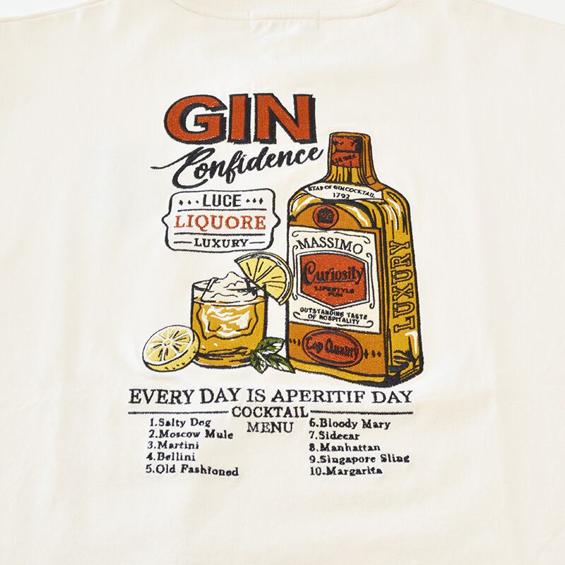 バックのカクテルメニューのデザインが映え、贅沢に刺繍を施したアイテム。