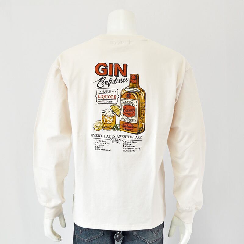 POWER TO THE PEOPLE|パワートゥーザピープル|カクテル刺繍 長袖Tシャツ ロンT |メンズ|オフホワイト