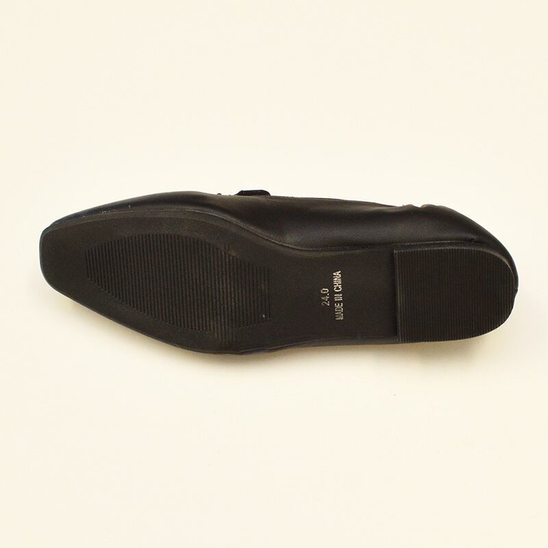 上品な光沢感のあるレザー調素材を使用した、シンプルで使いやすいローファー。
