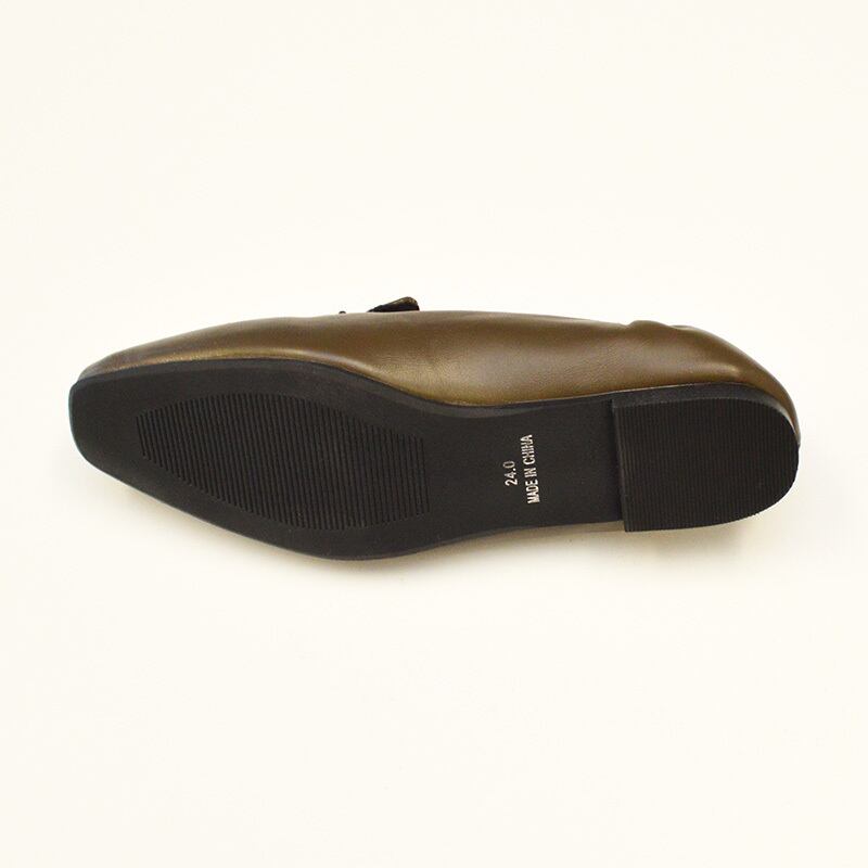 上品な光沢感のあるレザー調素材を使用した、シンプルで使いやすいローファー。