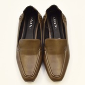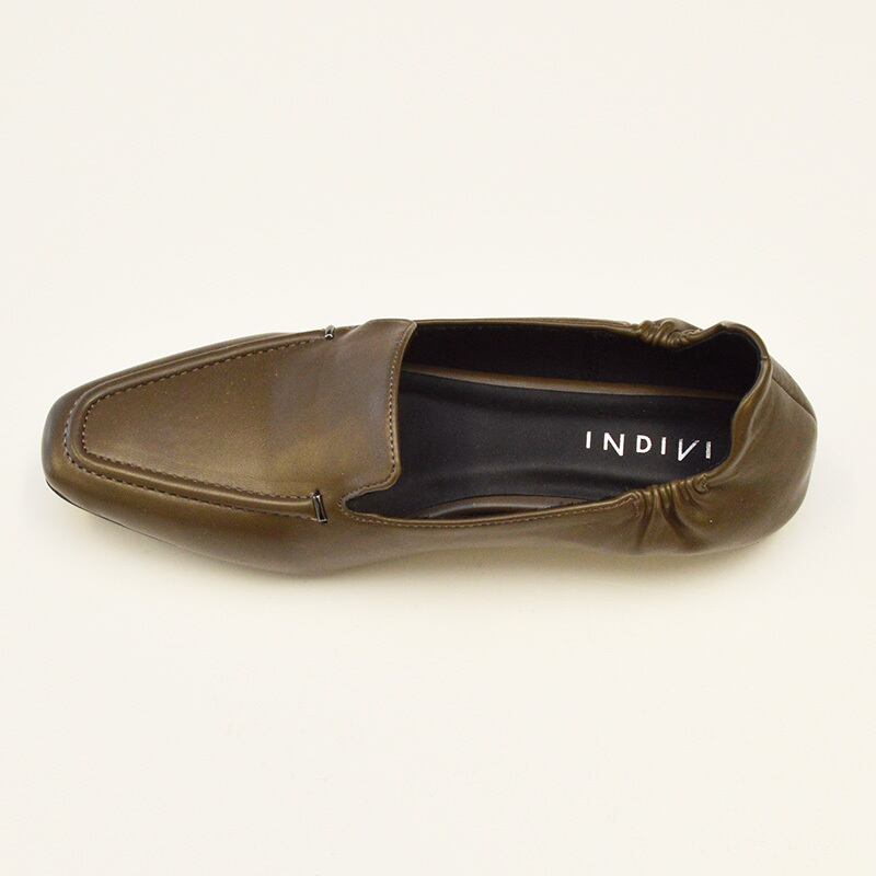 INDIVI インディヴィ|やわらかレザー調 スクエアトゥローファー|通勤通学 レディース ブラウン