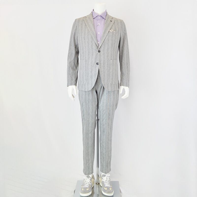 デザインは、美しくテーパードを描く美しいシルエットと、生地を縫い上げてセンタープリーツラインを形成した"永久プリーツ加工"で、どんなに動いても品のある表情がキープできます。