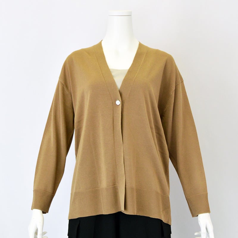 フロントに配された一つボタンがすっきりとした印象のカーディガン。