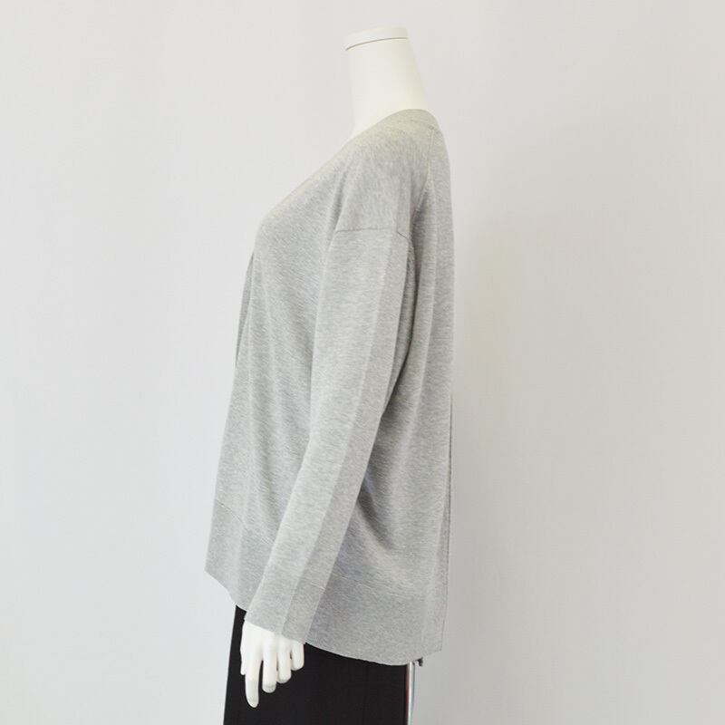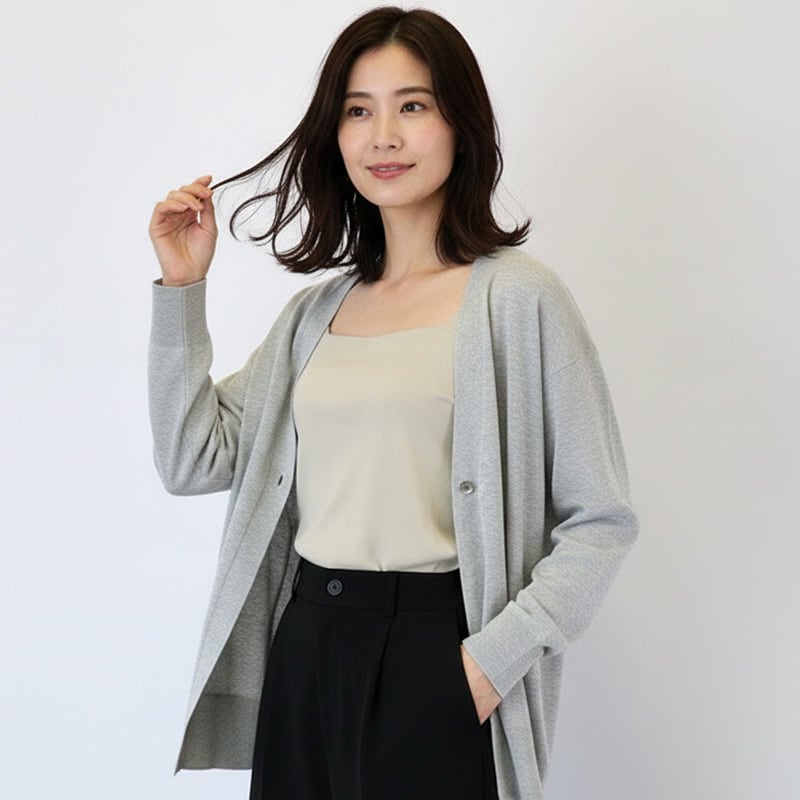 フロントに配された一つボタンがすっきりとした印象のカーディガン。