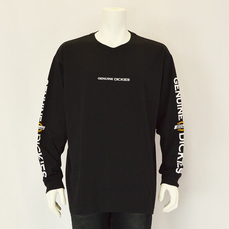 【大きいサイズ】|GENUINE DICKIES|袖プリント&バックプリントT|ブラック