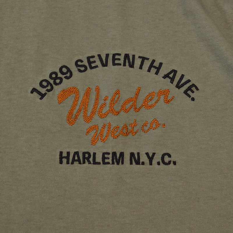 【大きいサイズ】|WILDER&WEST|ワイルダーアンドウエスト|空紡天竺アメリカン刺繍Tシャツ|カーキー
