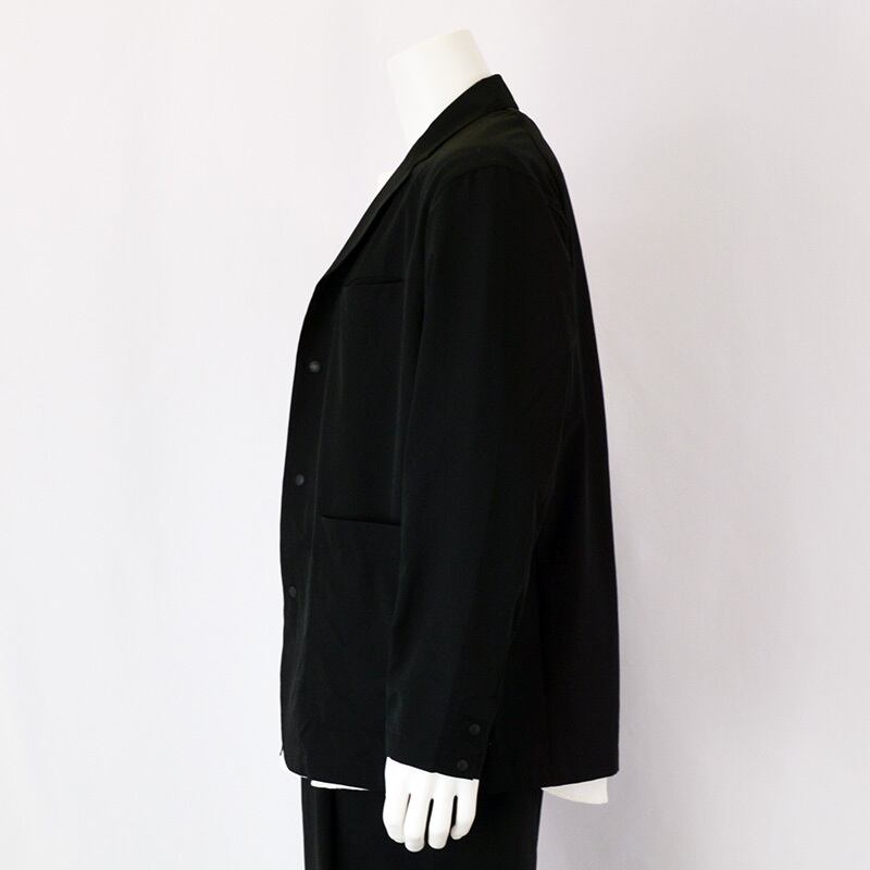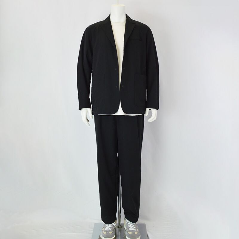軽量でシワになりにくく、コンパクトに持ち運びが可能なため、出張や移動時にも便利。同素材のパンツとのセットアップスタイルもおすすめです。