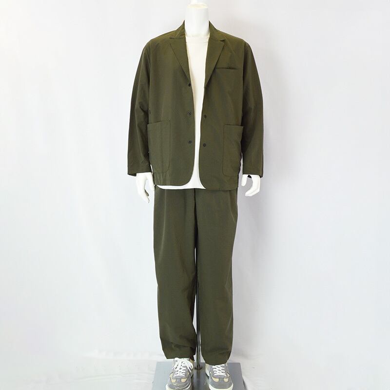 軽量でシワになりにくく、取り扱いも簡単。同素材のテーラードジャケットとのセットアップスタイルはもちろん、Tシャツやシャツと合わせたカジュアルな着こなしにも対応します。