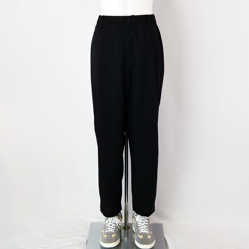 ・タック入りのテーパードシルエットで、すっきりとした印象に