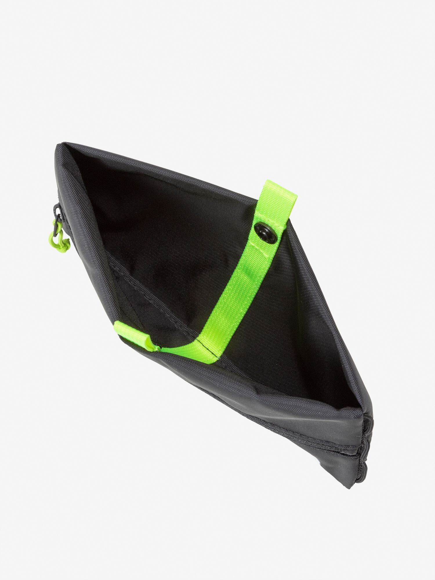 シンプルな長方形パターンでデザインされた、収まりがいいフラットポーチ