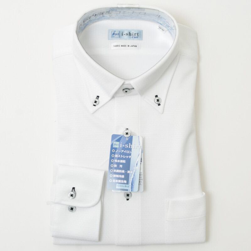完全ノーアイロン|ワイシャツ|アイシャツ|i-shirt|長袖|ホワイト|レギュラーフィット|ボタンダウン|ドビー・コモン