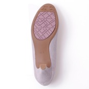 ・踏み付け部の底意匠に溝を入れ足が段階的に曲がるように設計。