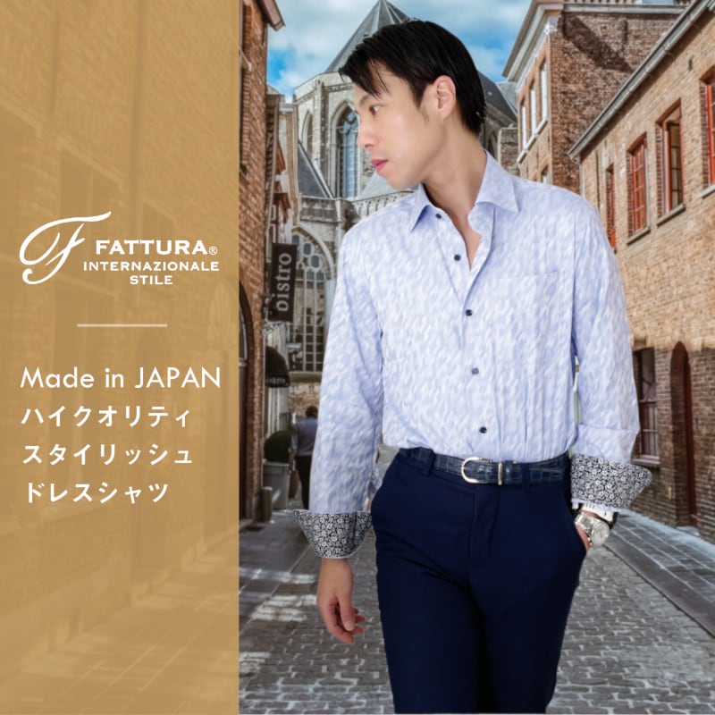 FATTURA|ファトゥーラ|セミワイド|裏地切替|スカイ・ブルー|ジオメトリー|Made in JAPAN|80番手双糸