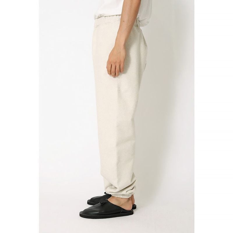 しっかりとした目付が特徴の、裏ループのスウェットシリーズ。ホームからキャンプまで、リラックスして快適な時間を過ごせるためのアイテムを取りそろえています。毎シーズン製品の製造過程で出た落ち綿や裁断屑をすべて回収して粉砕し、糸に戻して次の製造の際の原料へと還元される、<UP CYCLE COTTON PROJECT>の商品です。 このシリーズでは、老若男女問わず、日常で汎用性の高い身近な洋服となるようなベーシックアイテムを展開。フルレングスパンツのシルエットはゆとりがあり、脚のラインを絶妙にカバーします。また右側ヒップにポケットを付けることで、ラフになりすぎないバックスタイルを演出。もちろんサイドポケット付きで、機能性もキープ。同シリーズのフーディやプルオーバーに合わせて、トレンド感のあるセットアップスタイルをお楽しみいただけます。 20%のリサイクルコットンを含むコットン素材は、着用回数や洗濯回数が増えてもピリングが発生しにくく、キャンプシーンでも抜群の耐久性を発揮。すぐにへたることもなく、形状をしっかりとキープします。どのアイテムも長く付き合っていけるのが最大の特徴です。素材感はほどよくソフトで着心地も快適。動きやすさも兼ね備えています。