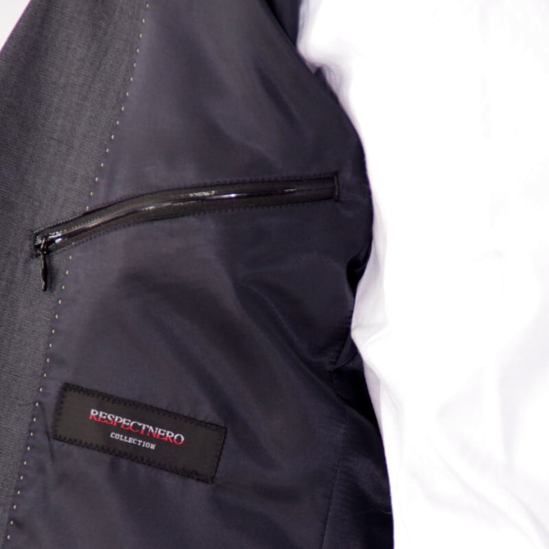 デニムライクな生地がスタイリッシュな上下セットスーツ。