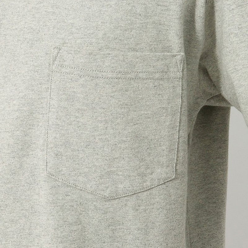 カットソー素材の産地和歌山にて限界までハイゲージに編み上げた肌離れの良いヘビーオンスの天竺にて通年重宝するアイテムです。毎シーズン製品の製造過程で出た落ち綿や裁断屑をすべて回収して粉砕し、糸に戻して次の製造の際の原料へと還元される、