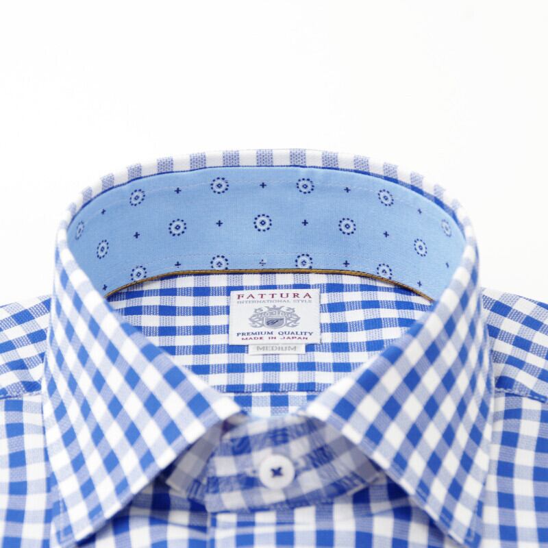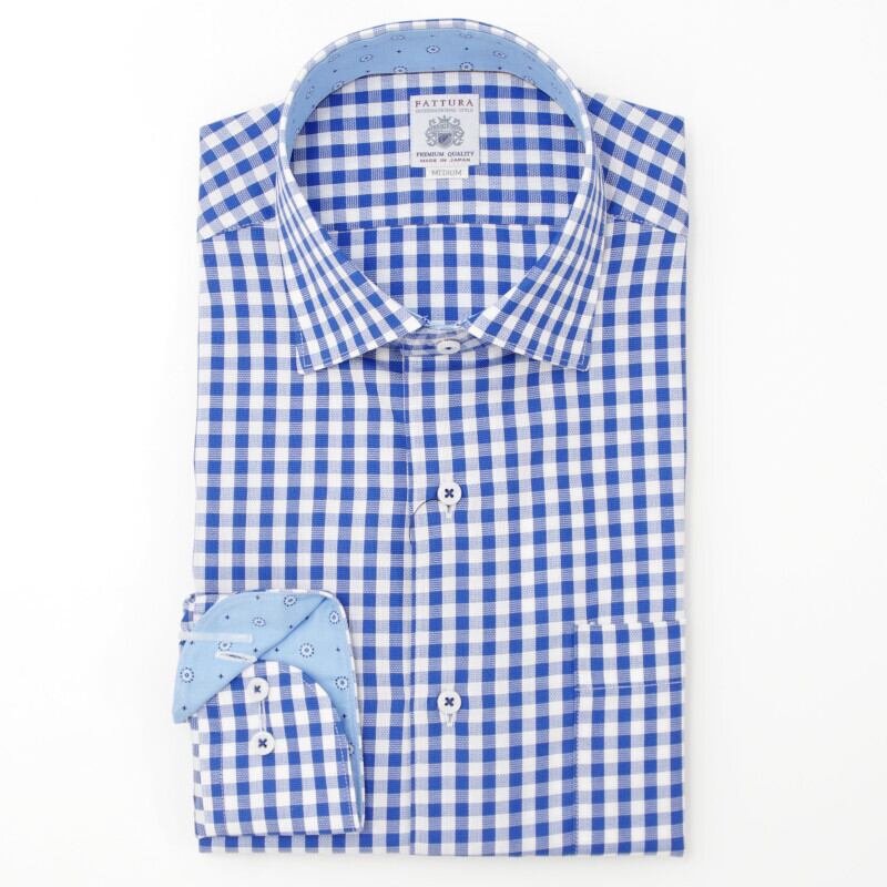 FATTURA|ファトゥーラ|Made in JAPAN|セミワイド|ギンガムチェック|シンフォニー・ブルー|80番手双糸以上使用
