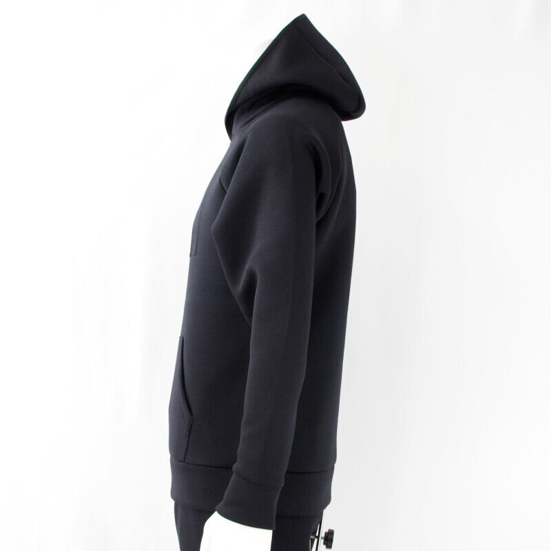 保温性と通気性を兼ね備える特殊3層構造生地を使用した、軽量なスウェットフーディです。リサイクル素材を使用したストレッチ性が高いニット生地を、ダンボール状の気室空間のある3層構造に形成することで、肉厚な質感ながら軽く、保温力を発揮するデッドエアが発生しやすいニット生地構造を実現。トレーニングシーンから日常使いまで幅広く活用できます。不快な静電気の発生を抑える静電ケア設計です。