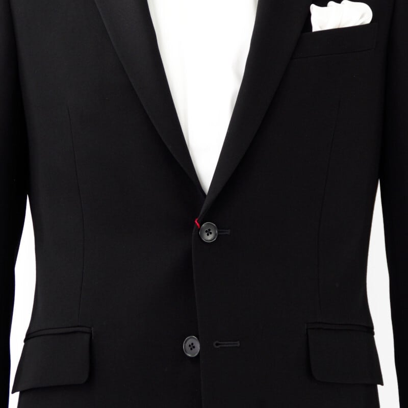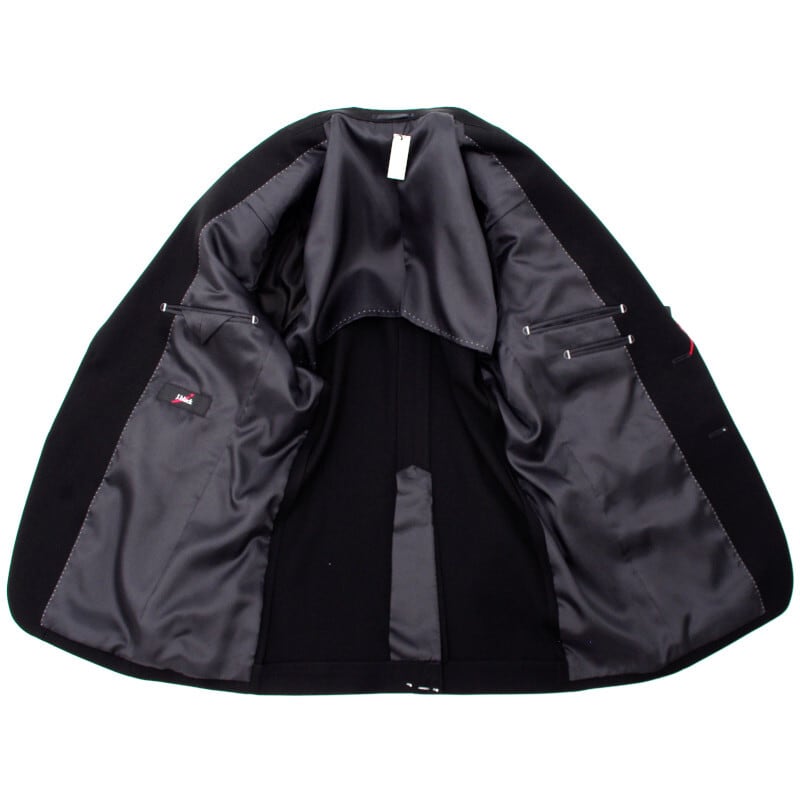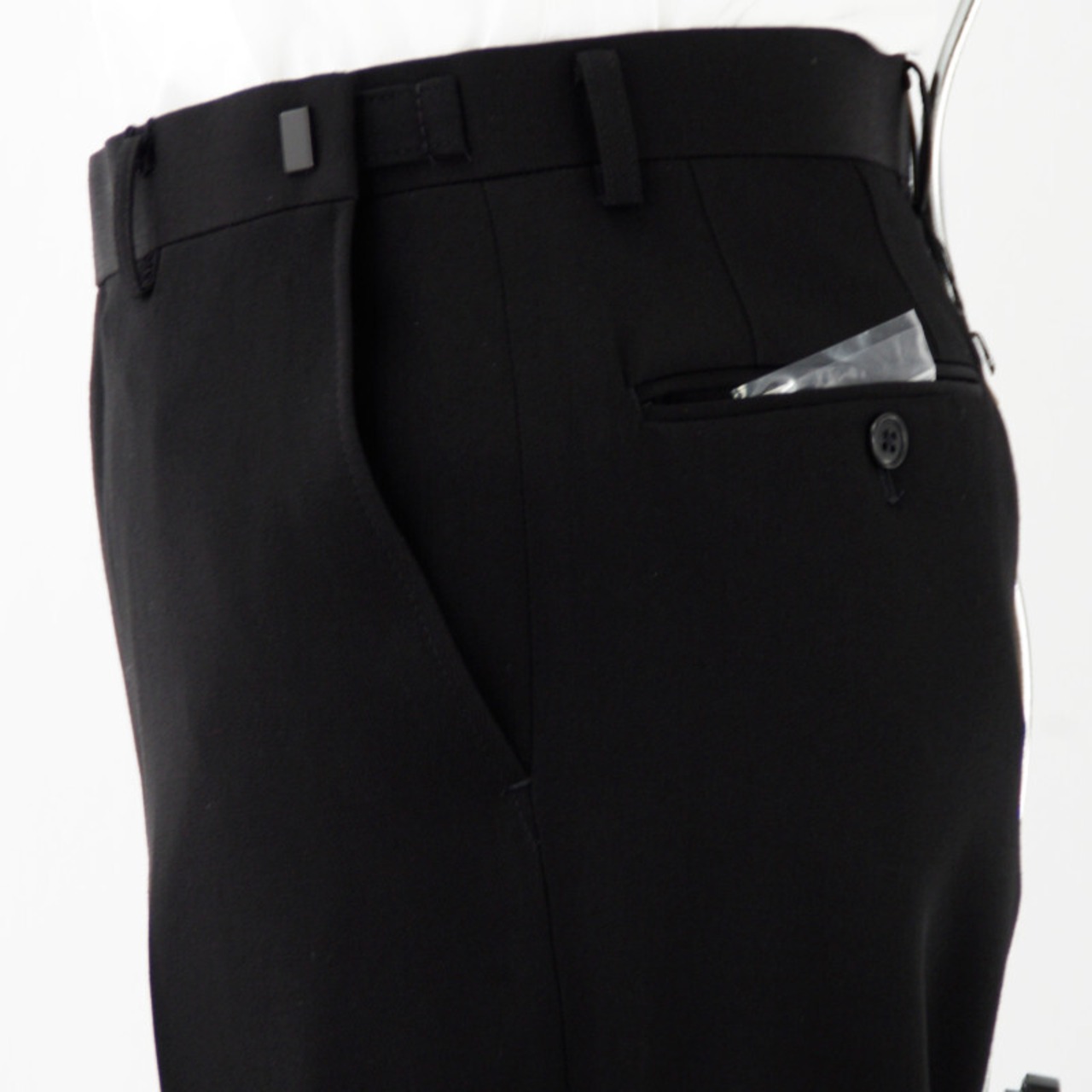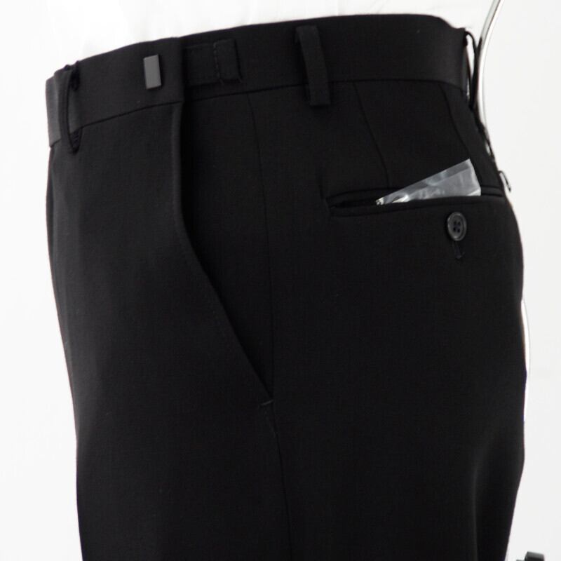 特殊濃染加工を施した生地は、深い黒さと艶、上質なドレープ感を体現しています。