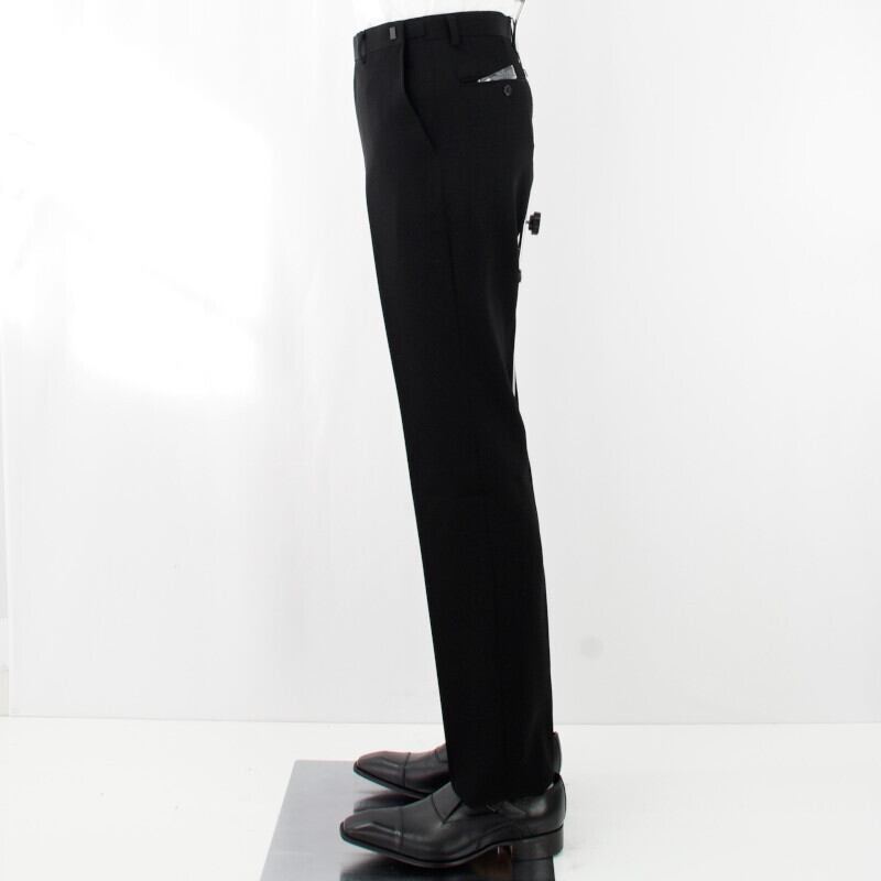 脚のラインを細く見せるノータックの美脚シルエットパンツ。