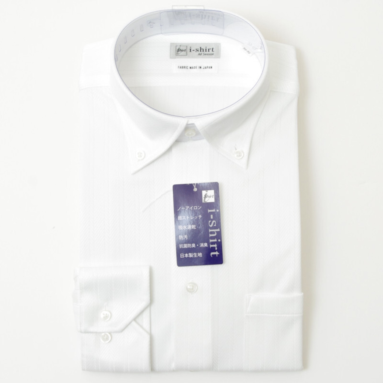 完全ノーアイロン|ワイシャツ|アイシャツ|i-shirt|長袖|ホワイト|レギュラーフィット|ボタンダウン|ドビー・ヘリンボーン