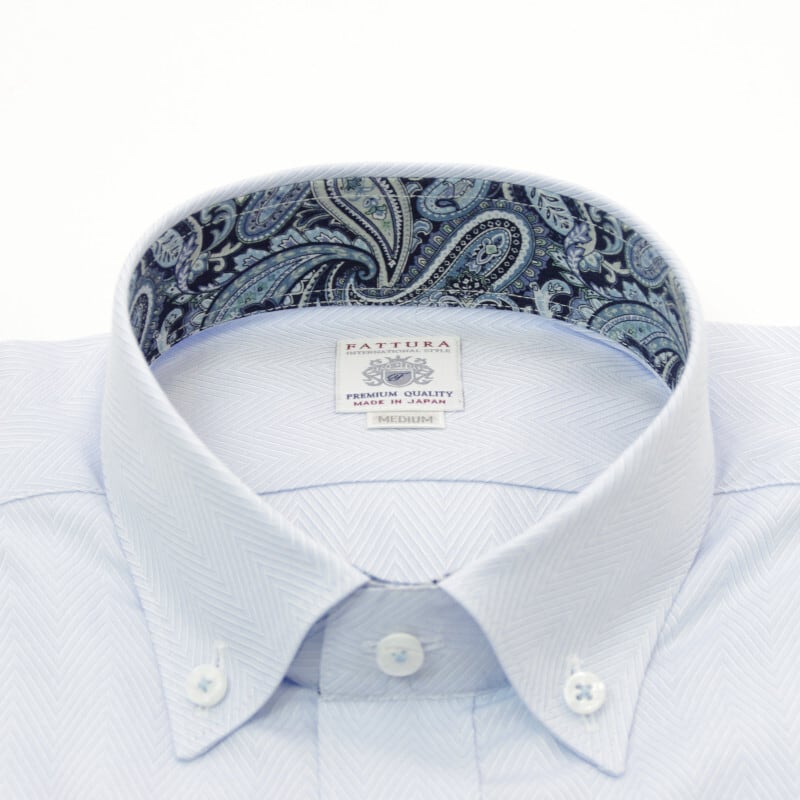 FATTURA|ファトゥーラ|Made in JAPAN|ボタンダウン|ドビーヘリンボーン|衿裏切替|アルパイン・ブルー|80番手双糸以上使用